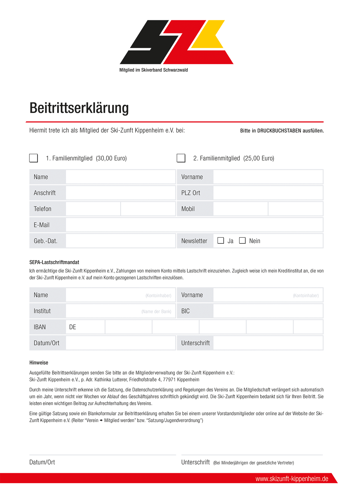 Werde Mitglied in der Ski-Zunft Kippenheim